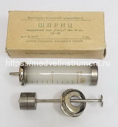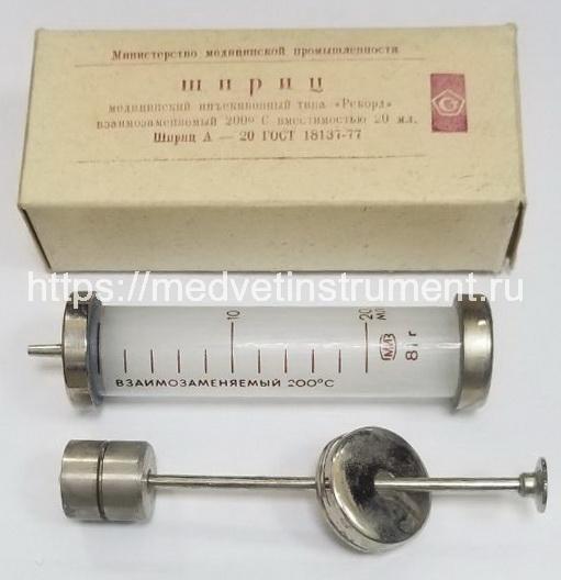 Шприц стеклянный с металлическим поршнем 20 мл Рекорд