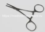 Инструмент для прикрепления операционного белья к брюшине, представляющий собой зажим с кремальерой, имеющий на изогнутых по плоскости рабочих губках поперечные насечки и зубцы на концах. Длина, мм - 195. ...